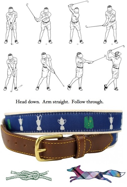 Knot Belt Co. Prize Back from Knot Belt Co. and Country Club Prep: A Country Club Prep exclusive 4 Majors belt, a t-shirt that will help your swing, and shade straps to make sure you don’t lose your beloved wayfarers. What else do you need? (Ends Friday)